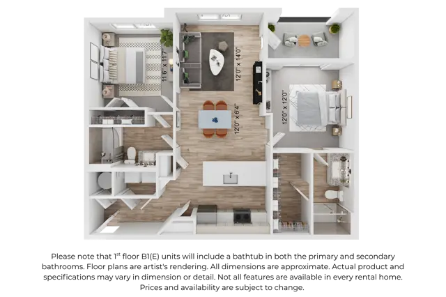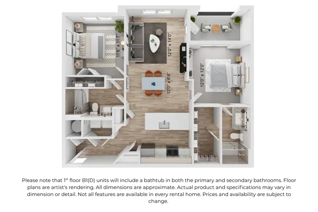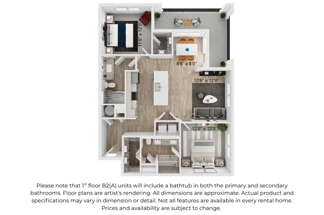 2 Beds | 2 Baths